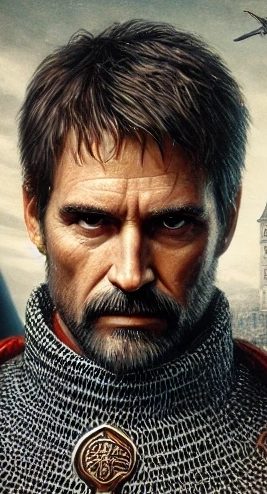 Legend has it that he was monolithic in build with an angular face, almost carved in stone. His light blue eyes convey the merciless hardness of a fearless holy warrior. Sword, morning star, battle axe, Bible - in that order - these are his weapons.