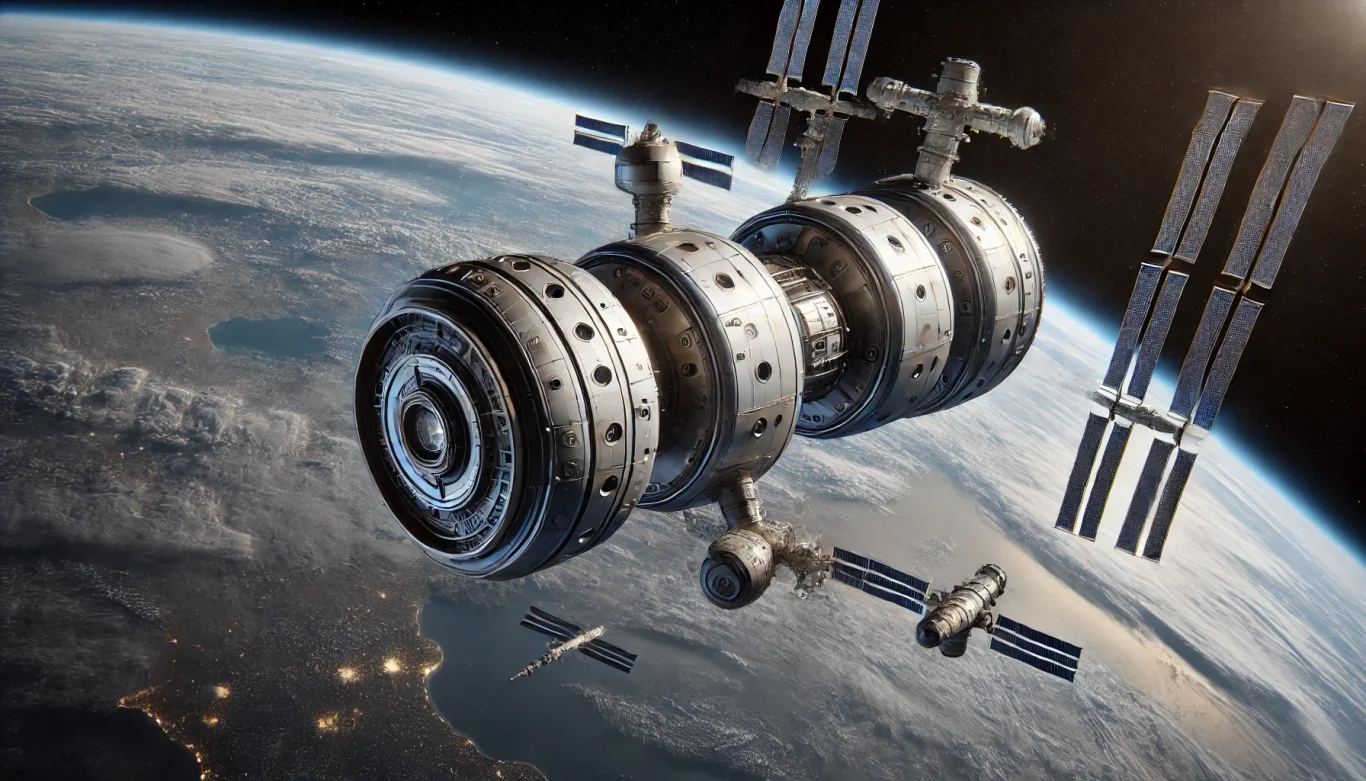 2222. On the Space Ark, a rotating cylindrical sphere 4,000 km long and 1,450 km in diameter, all of Earth's people live on the inner surface of the mantle. SalemWorld can only exist on the night side of Earth because the sun has swollen into a red giant. All of Earth's seas and rivers have dried up; it is barren and desolate.